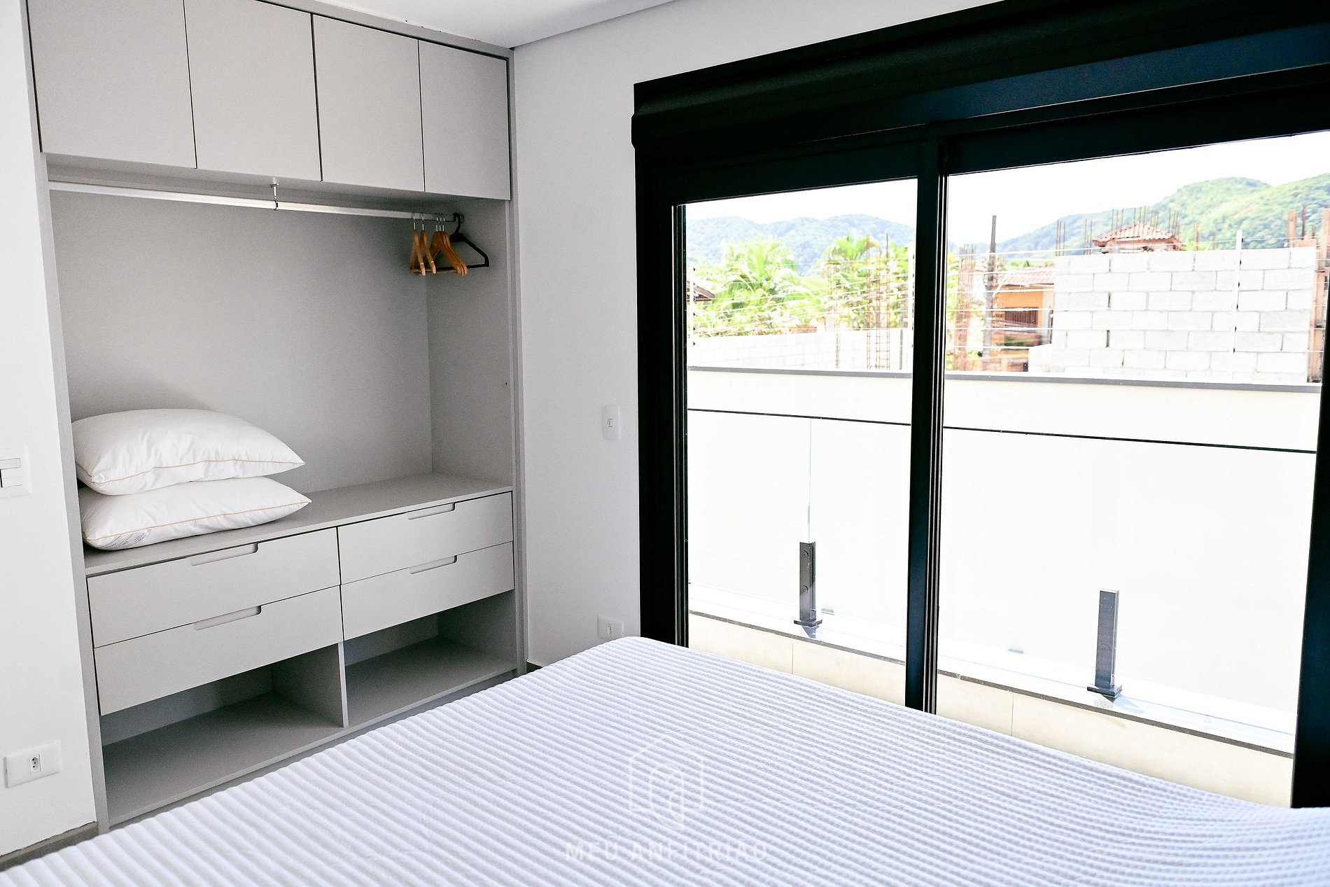 - Suíte 2: cama king, guarda-roupa, ar-condicionado e varanda.