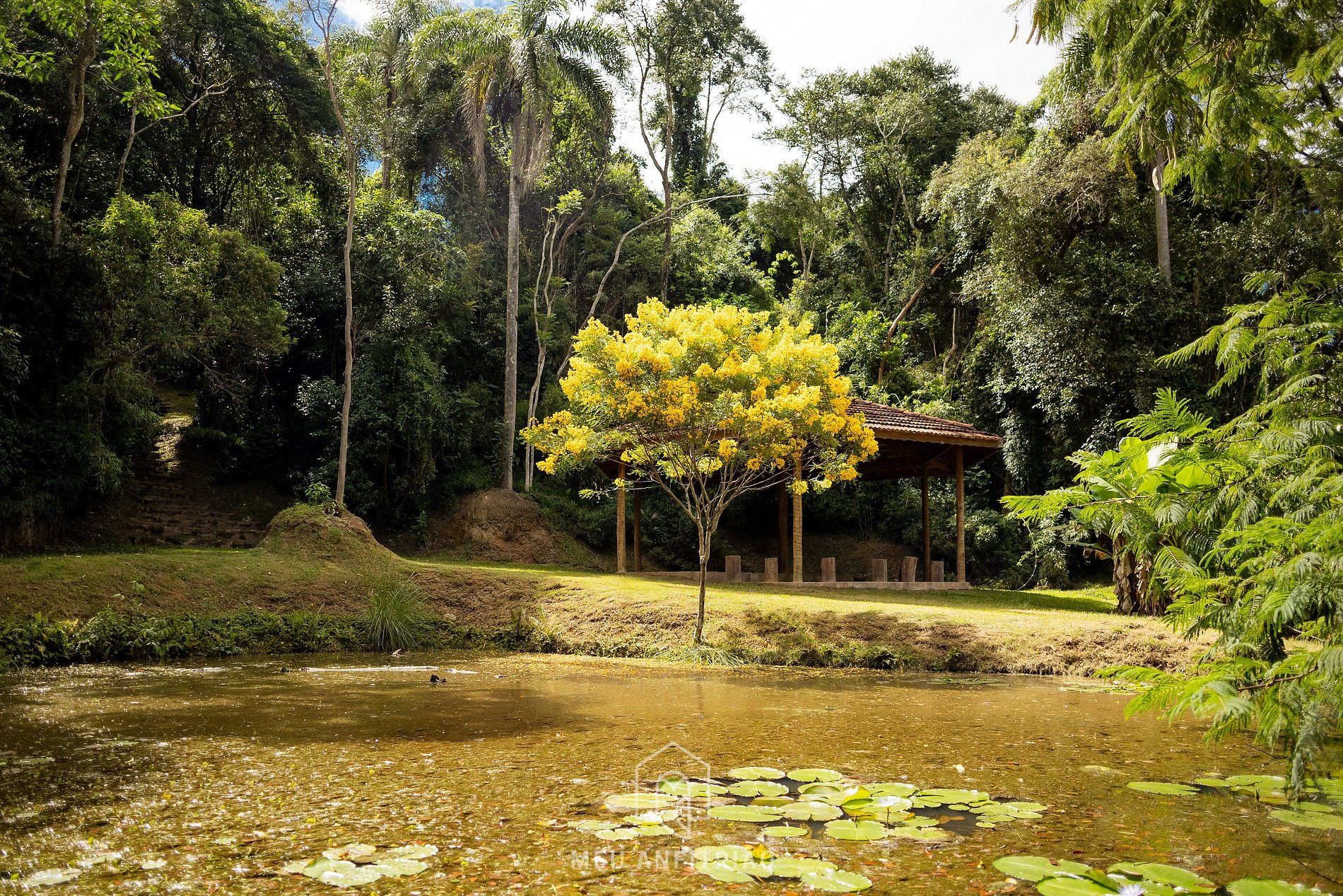 - Jardim amplo, que conecta todas as áreas da propriedade e convida a momentos ao ar livre, contando com playground para as crianças, campo de futebol para atividades em grupo e acesso a uma área mais reservada com um pequeno lago, ideal para relaxar e aproveitar a tranquilidade do ambiente.