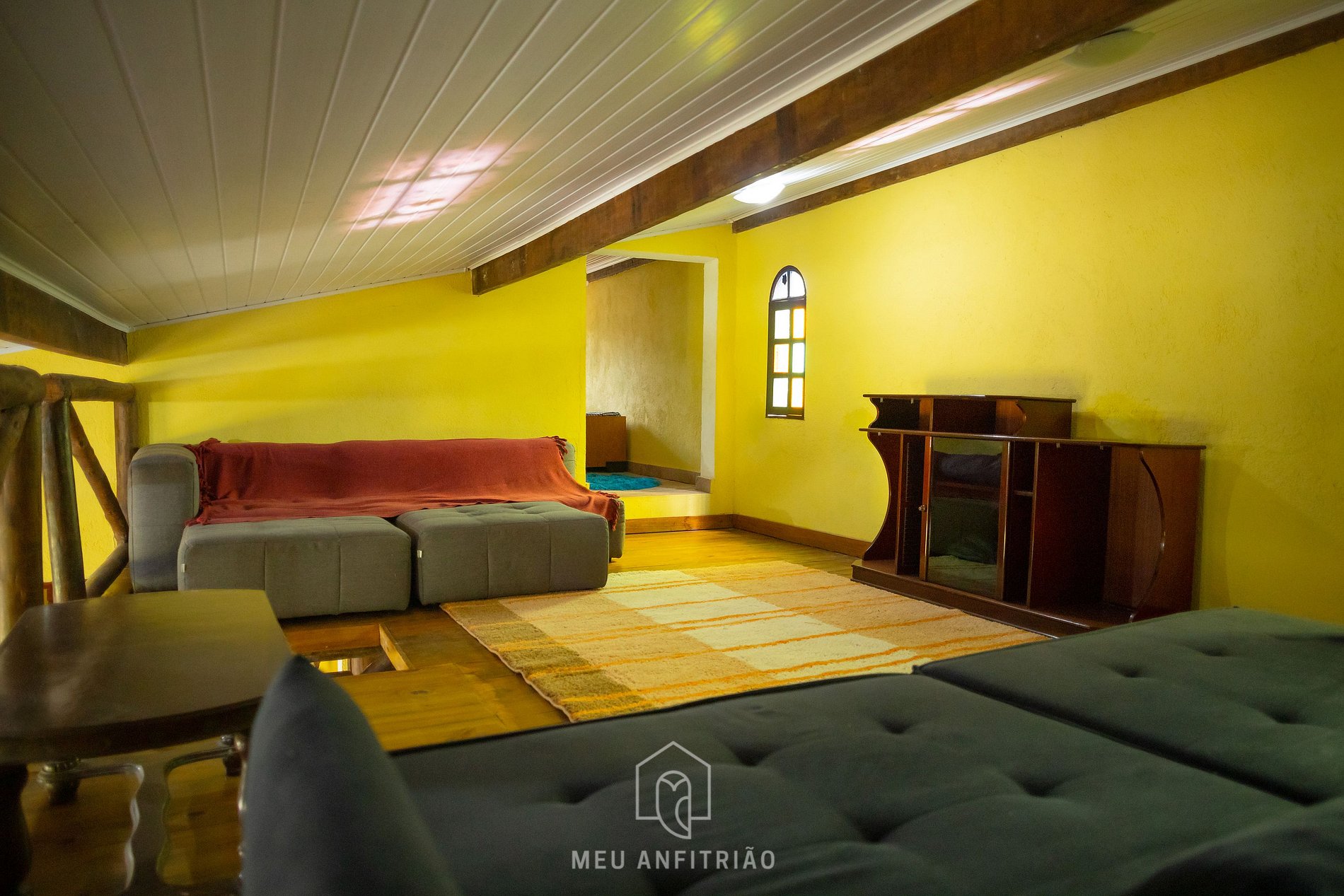 - Sala de estar e jantar integradas, criando um ambiente acolhedor para reunir todos, com sofás, TV e mesa para refeições, além de uma cozinha de apoio equipada com frigobar, micro-ondas e filtro d’água.