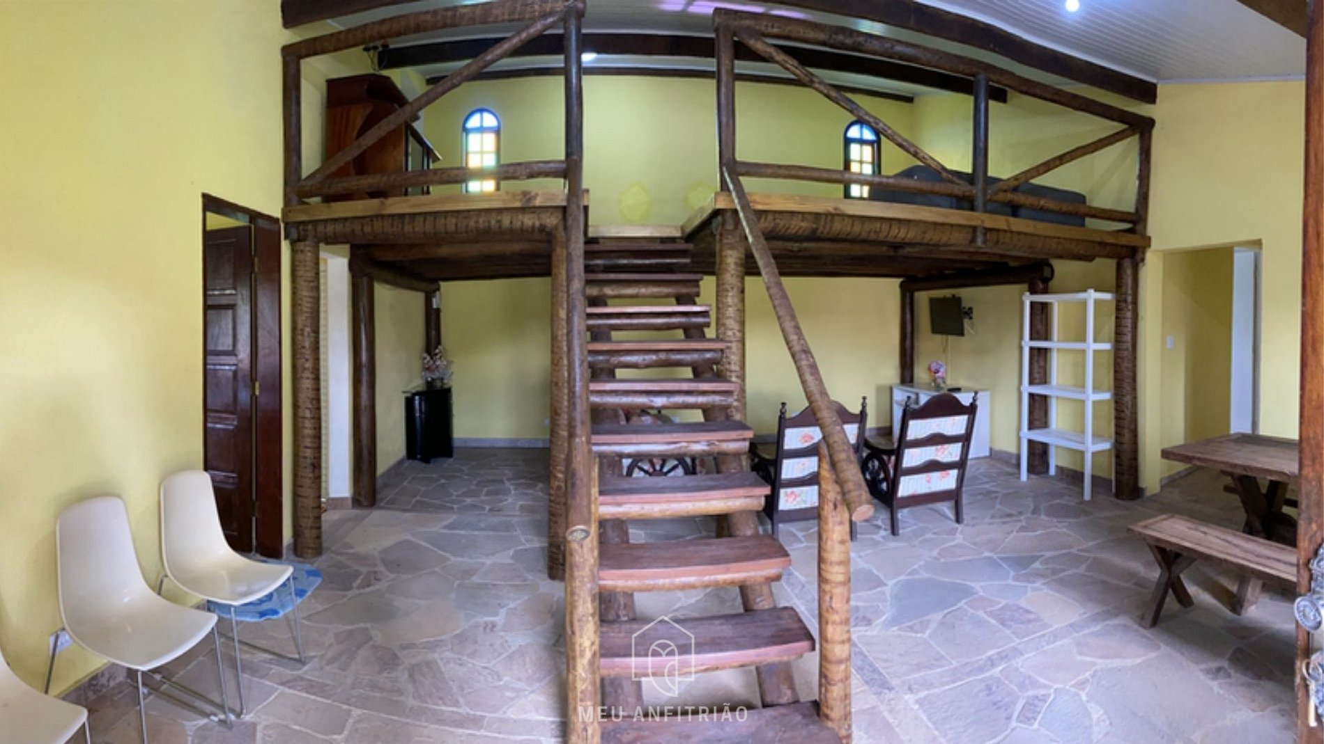 - Antessala no mezanino, com sofá-cama, oferecendo um espaço extra para descanso ou convivência.