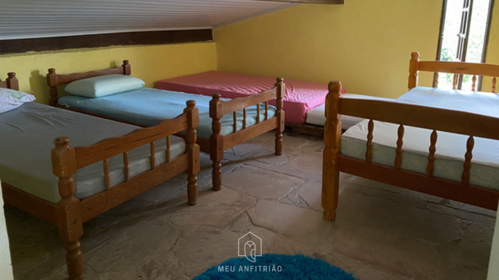 - Quarto 4: 3 camas de solteiro e 1 cama de casal.