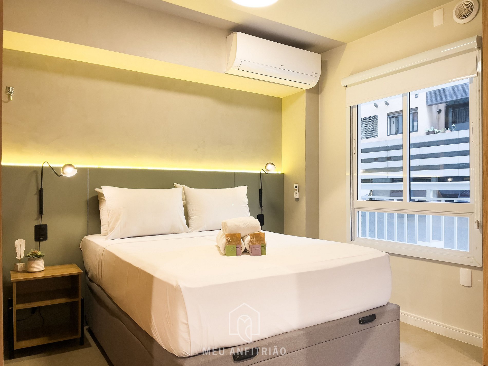 - Não há telas de proteção infantil, mas o studio é fechado por janelas de vidro e a varanda possui guarda-corpos, garantindo maior segurança ao local.