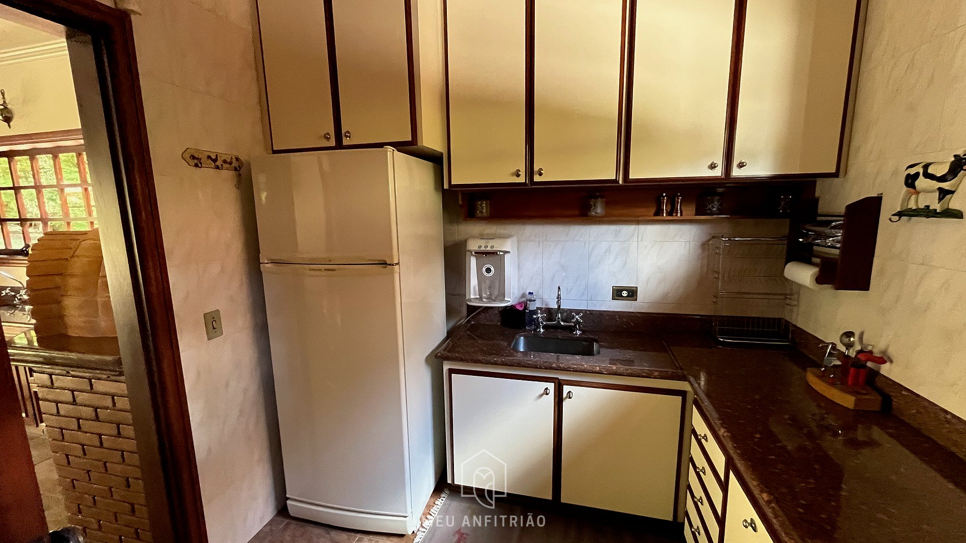 - Cozinha com os utensíliosn necessários para uma estadia prática, como geladeira, fogão, forno, micro-ondas, forno elétrico, filtro d’água entre outros.