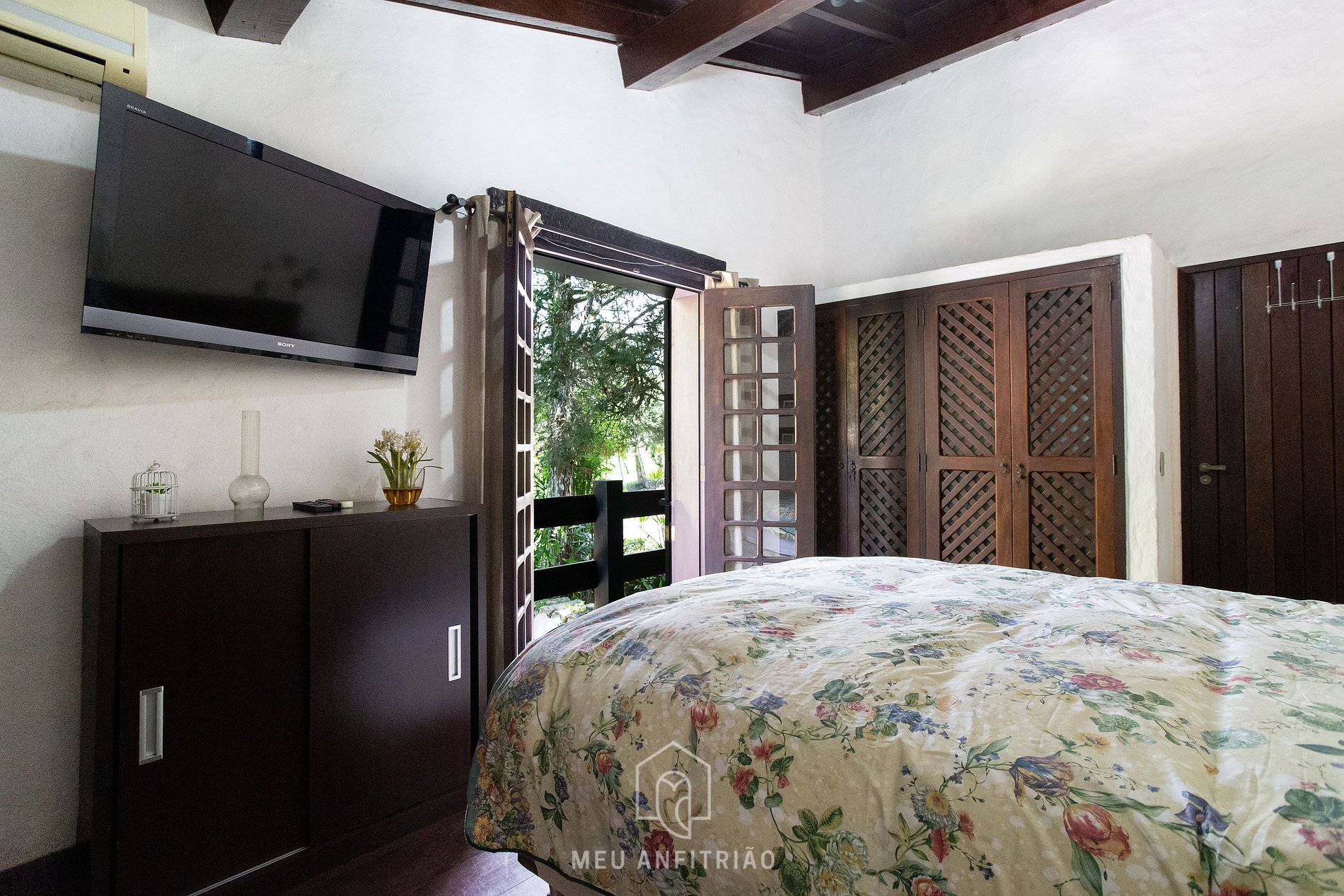 O acesso à casa principal é pelo andar superior, através da garagem. Ao entrar na casa, neste primeiro piso, o hóspede terá acesso a uma sala de TV, 2 suítes e 2 quartos que dividem 1 banheiro. Todos eles dispõem de ar-condicionado.