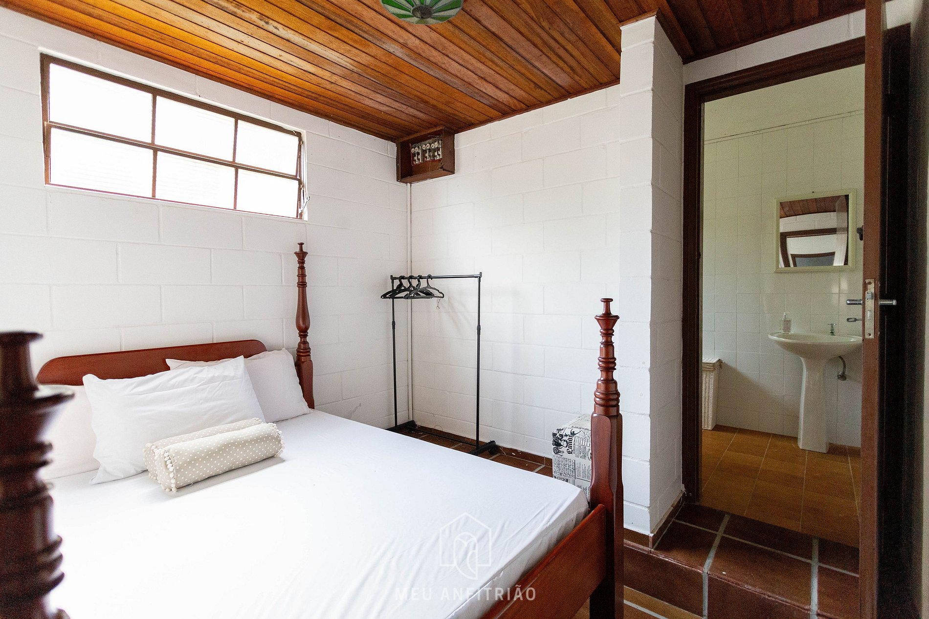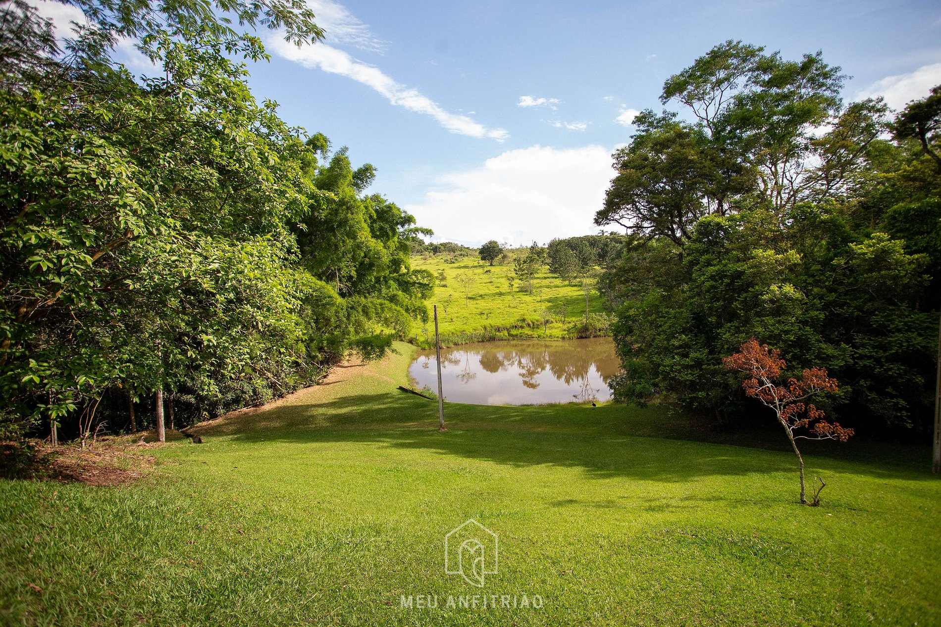 Acomoda até 20 pessoas pessoas confortavelmente em uma casa principal com 4 quartos e uma casa menor com 2 quartos. Conta com uma ampla área de lazer com churrasqueira, forno e fogão a lenha, piscina, dois lagos, sala de cinema, adega, lareira, horta, galinheiro, campo de futebol e muito espaço para caminhar em meio a natureza.