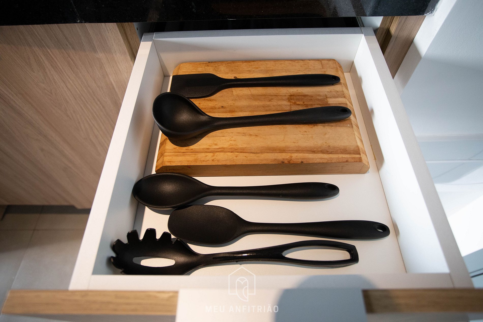 Ao entrar, o hóspede encontra uma cozinha equipada com tudo o que é necessário para uma estadia prática, incluindo geladeira, fogão cooktop, micro-ondas, cafeteira Nespresso, sanduicheira, liquidificador e outros utensílios. A varanda é fechada com portas de vidro e cortinas blackout, conta com uma cadeira de descanso e oferece uma vista agradável da cidade.