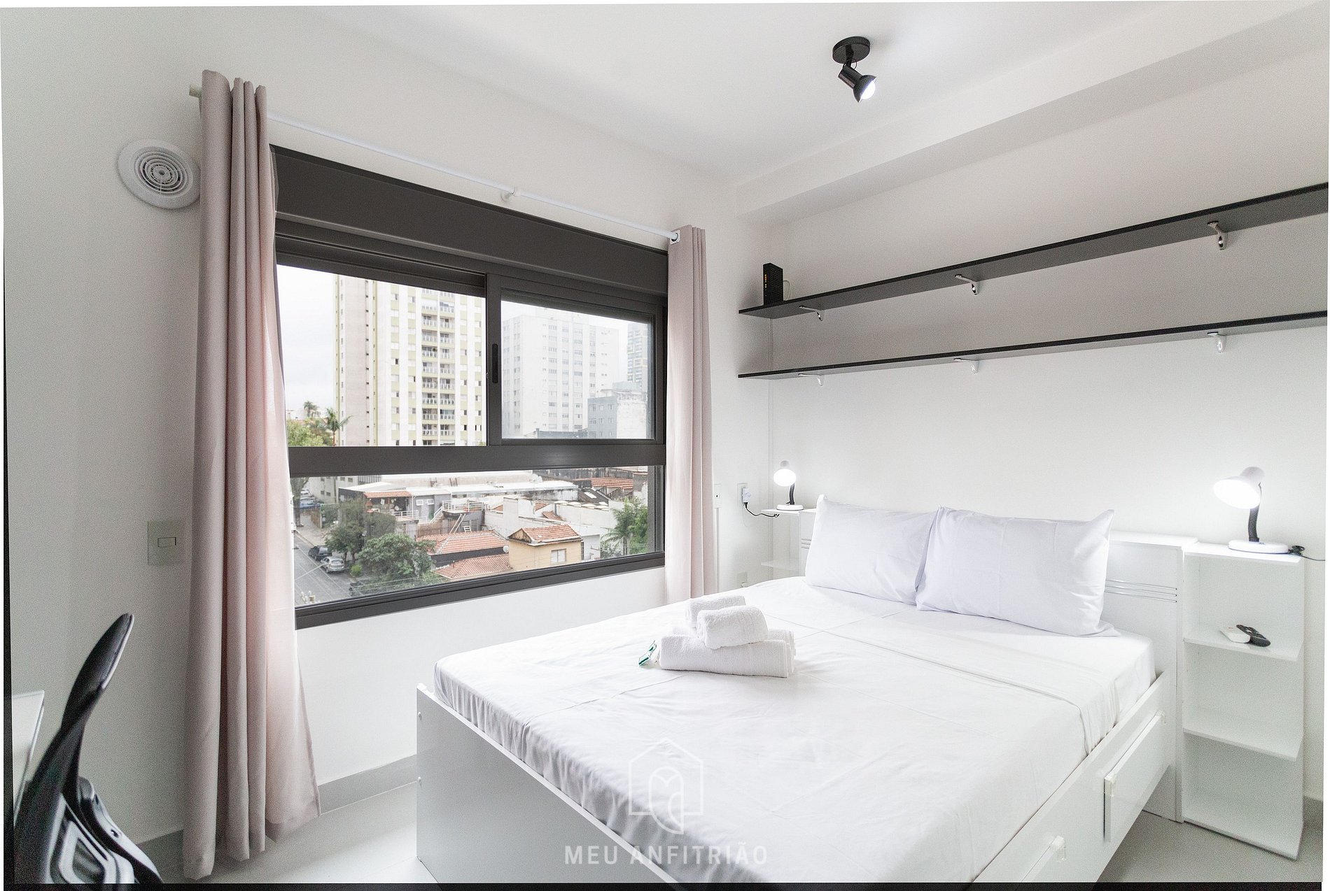 Nosso studio acomoda até 2 pessoas em uma cama de casal em um espaço de 20m². Contamos com portaria presencial 24h e área de lazer completa no condomínio.
