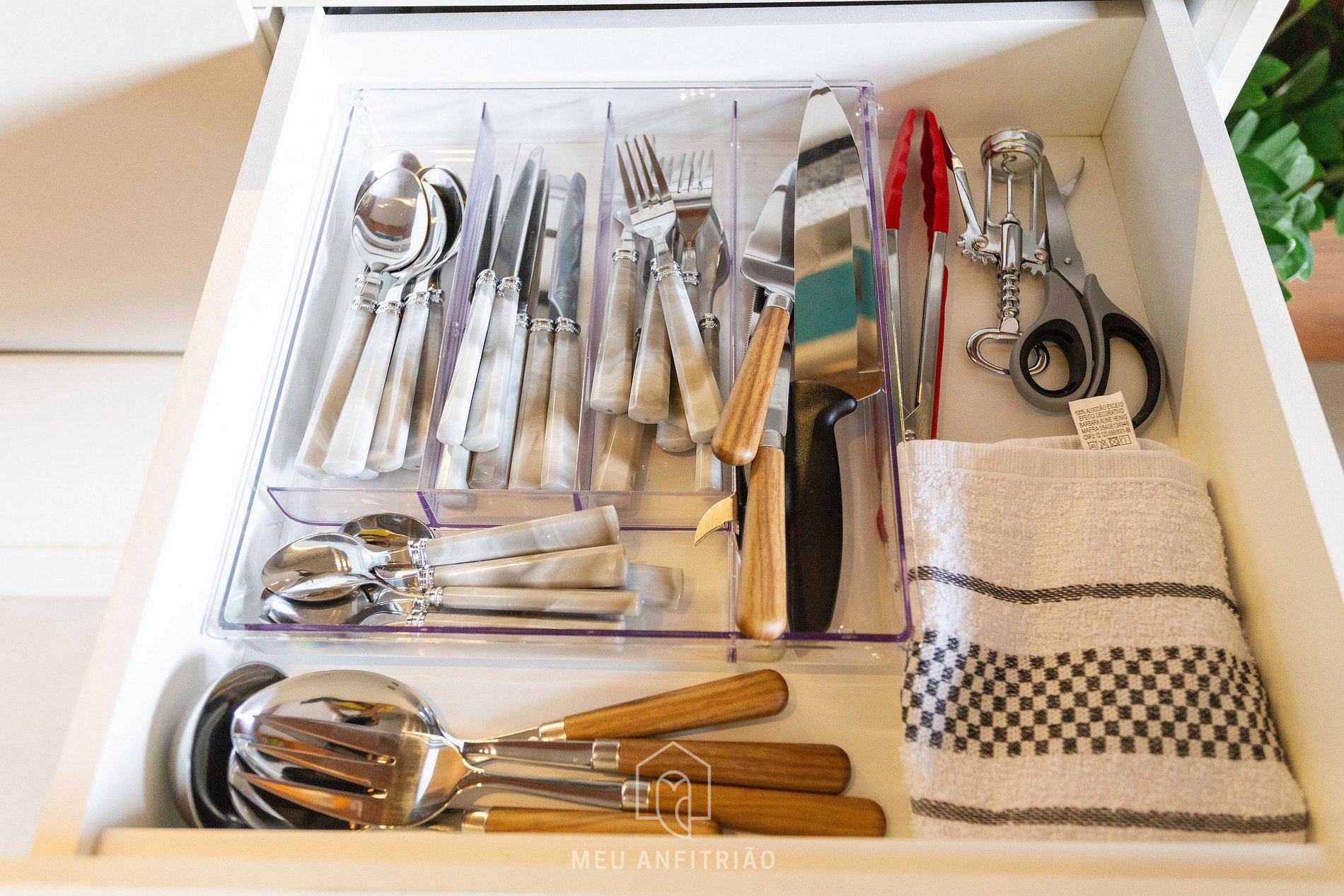 Ao entrar, o hóspede terá acesso à cozinha, que conta com os utensílios necessários para uma estadia prática, como frigobar, fogão cooktop, micro-ondas, cafeteira elétrica, liquidificador, sanduicheira, filtro d´água entre outros.