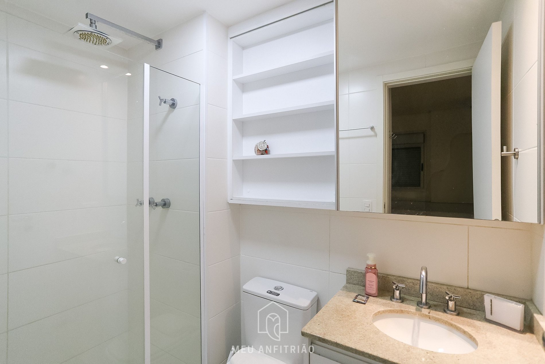 O hóspede terá acesso às dependências de lazer do condomínio como: piscina descoberta, piscina coberta, sauna, academia e minimercado. Não poderá utilizar o salão de festas.