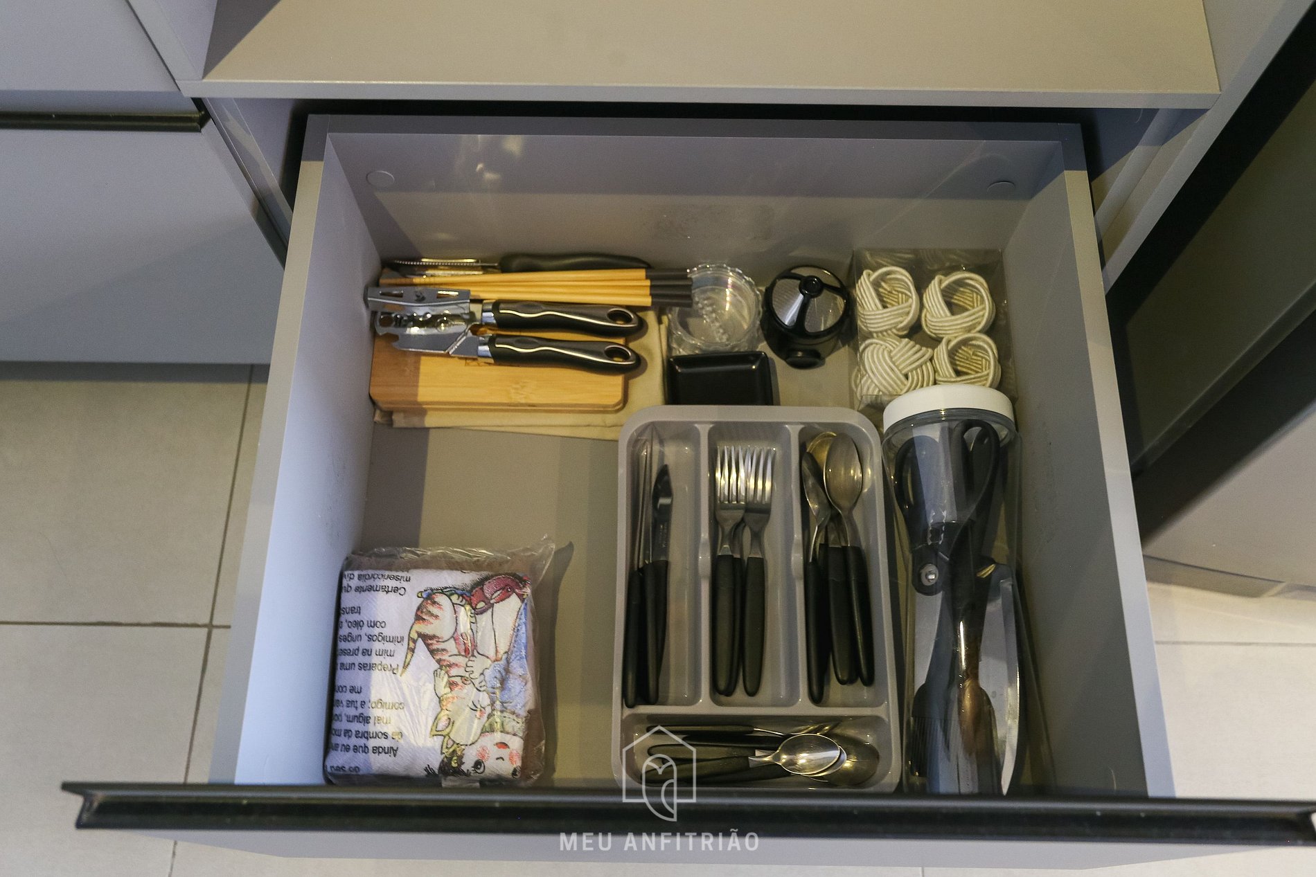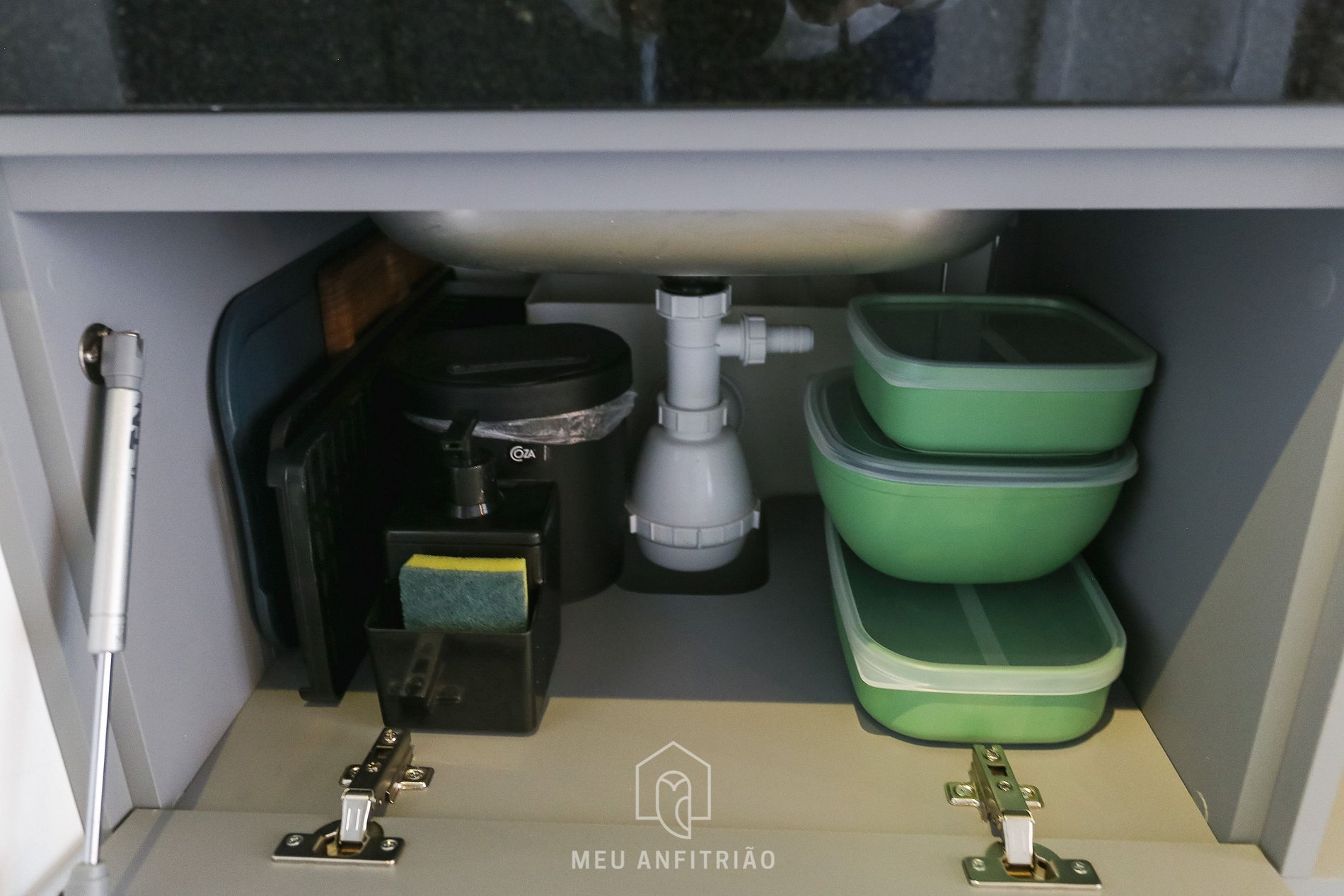 Ao entrar no studio, o hóspede estará na cozinha, que conta com os utensílios necessários para a estadia, como geladeira, fogão cooktop, micro-ondas, cafeteira Nespresso Vertuo Pop, chaleira elétrica entre outros.