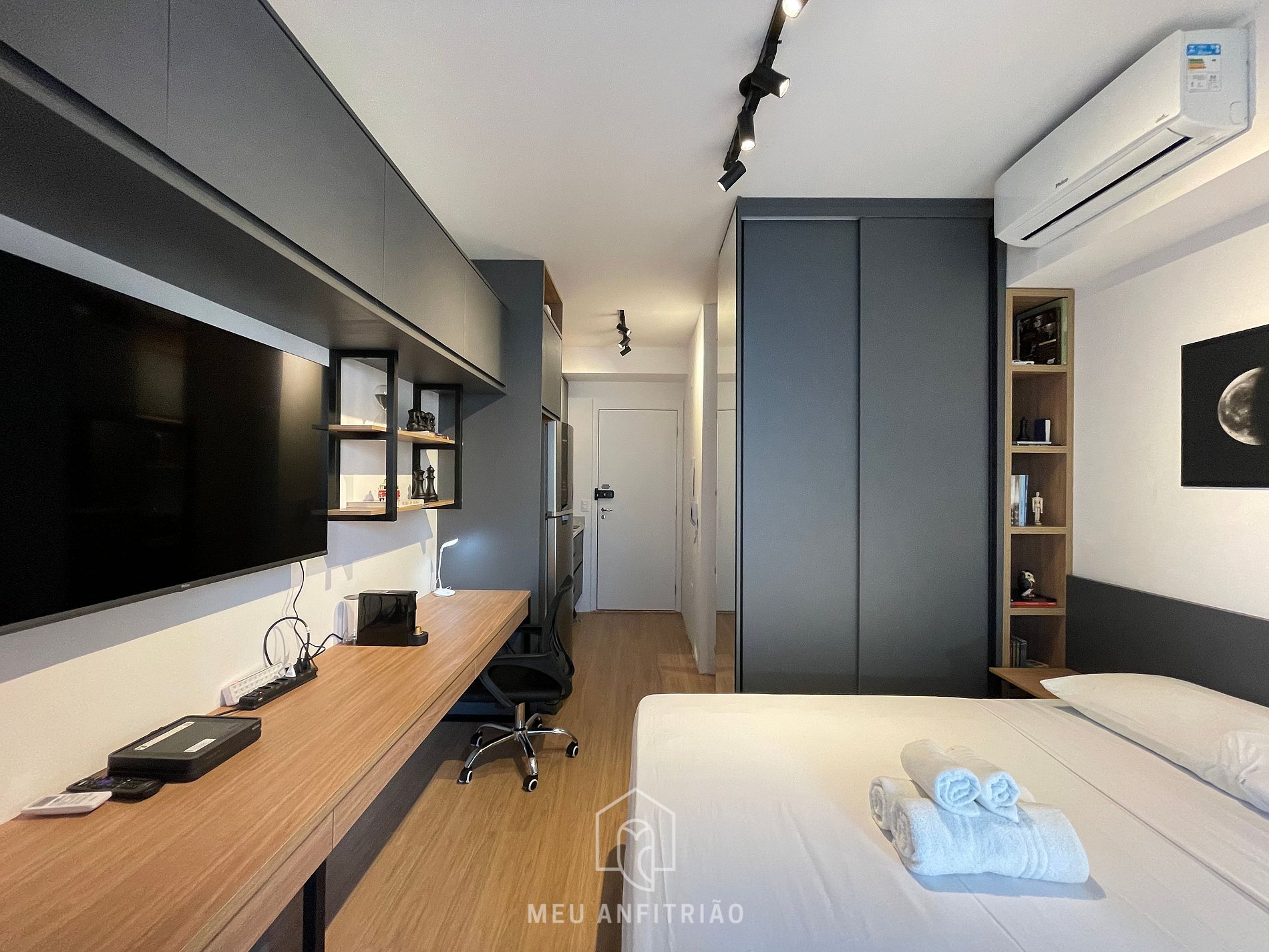Studio com secador de cabelos e TV perto do metrô