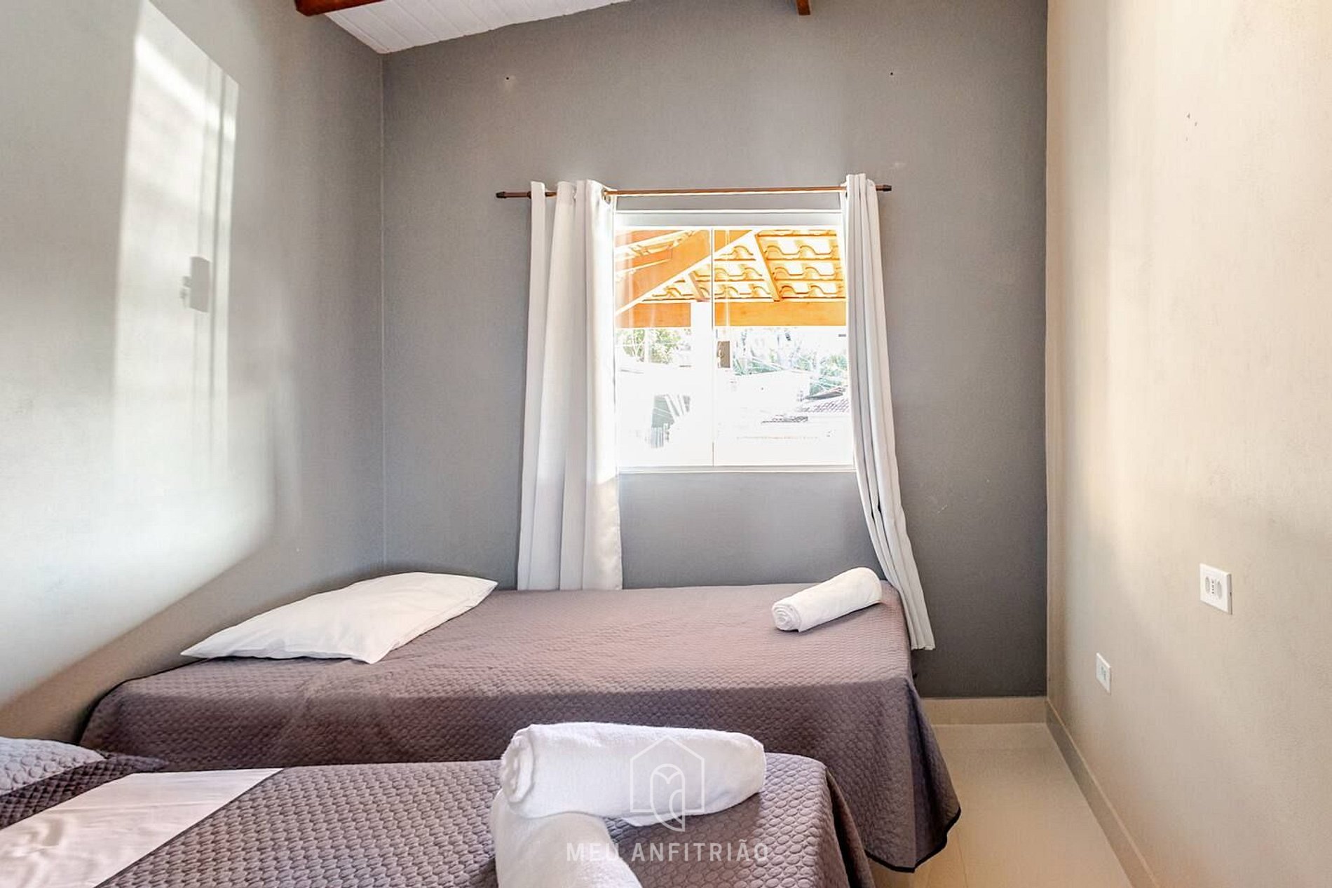Nossa casa conta com 85m² e acomoda confortavelmente até 7 pessoas em uma suíte com cama casal, um quarto com uma cama de casal e um quarto com uma cama de casal e uma cama de solteiro.