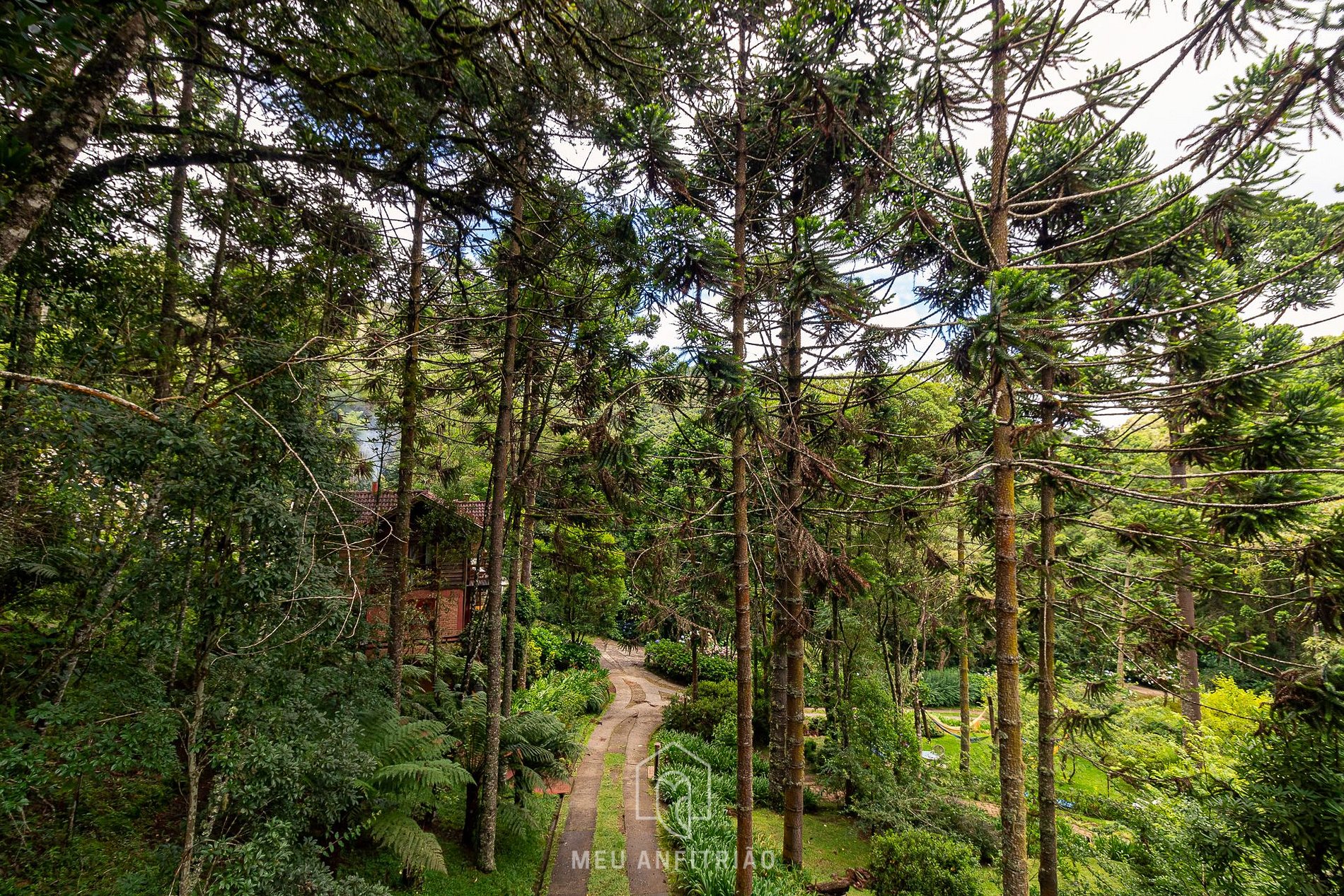 Ao total são 48.000m² de área verde que conta com trilhas, cachoeira, jardins e árvores típicas da região que compõe uma paisagem indescritível.