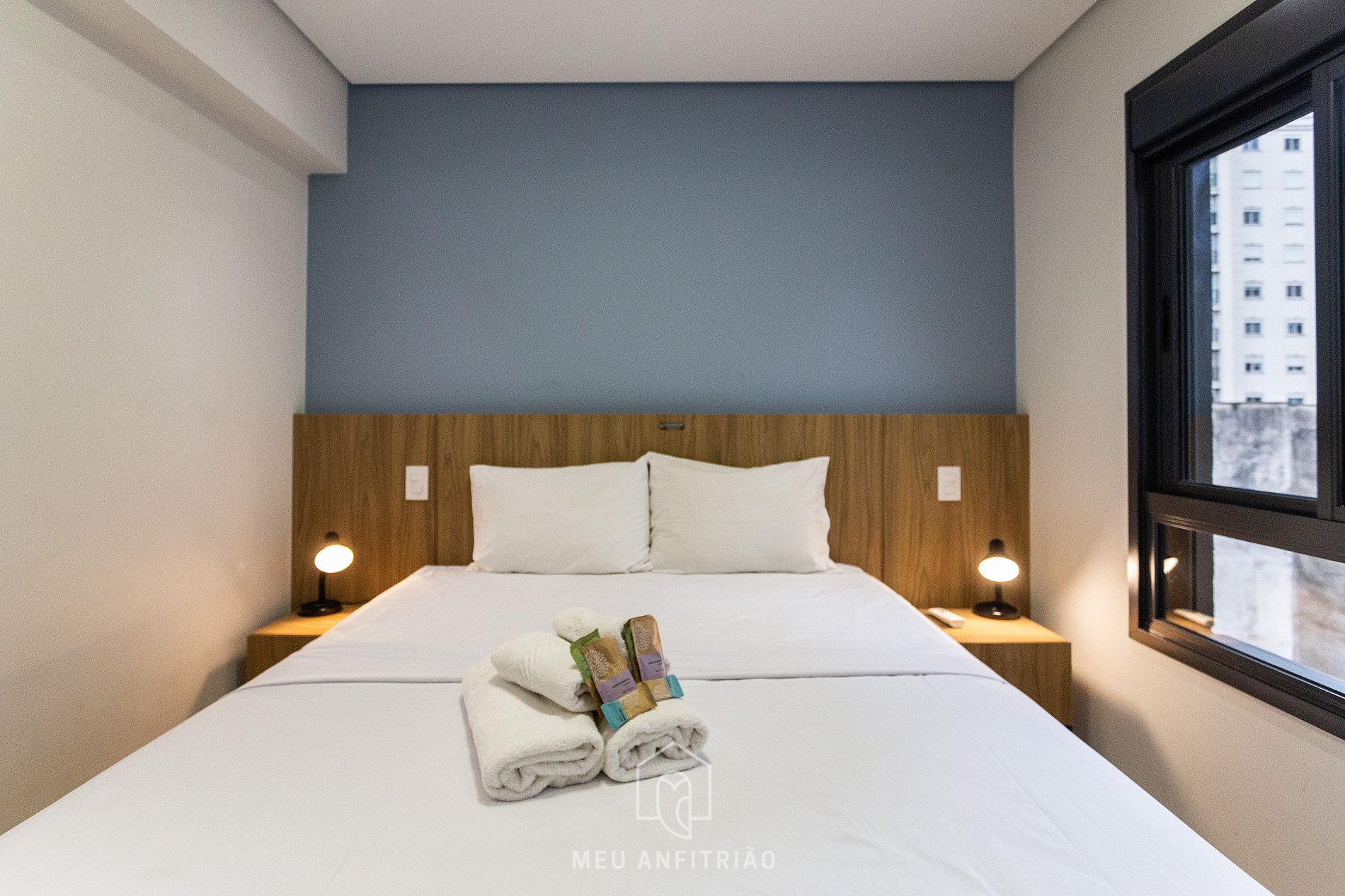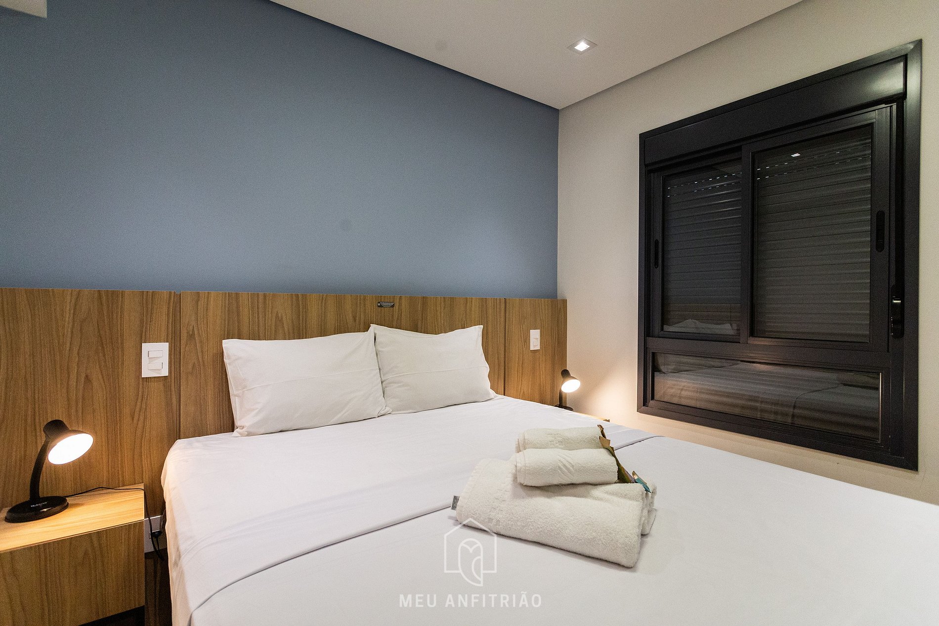 Nosso apartamento é ideal para shows e jogos no Allianz Parque ou trabalho remoto. Acomodamos até 4 pessoas com conforto, em uma cama queen e um sofá-cama de solteiro com uma bicama de solteiro.