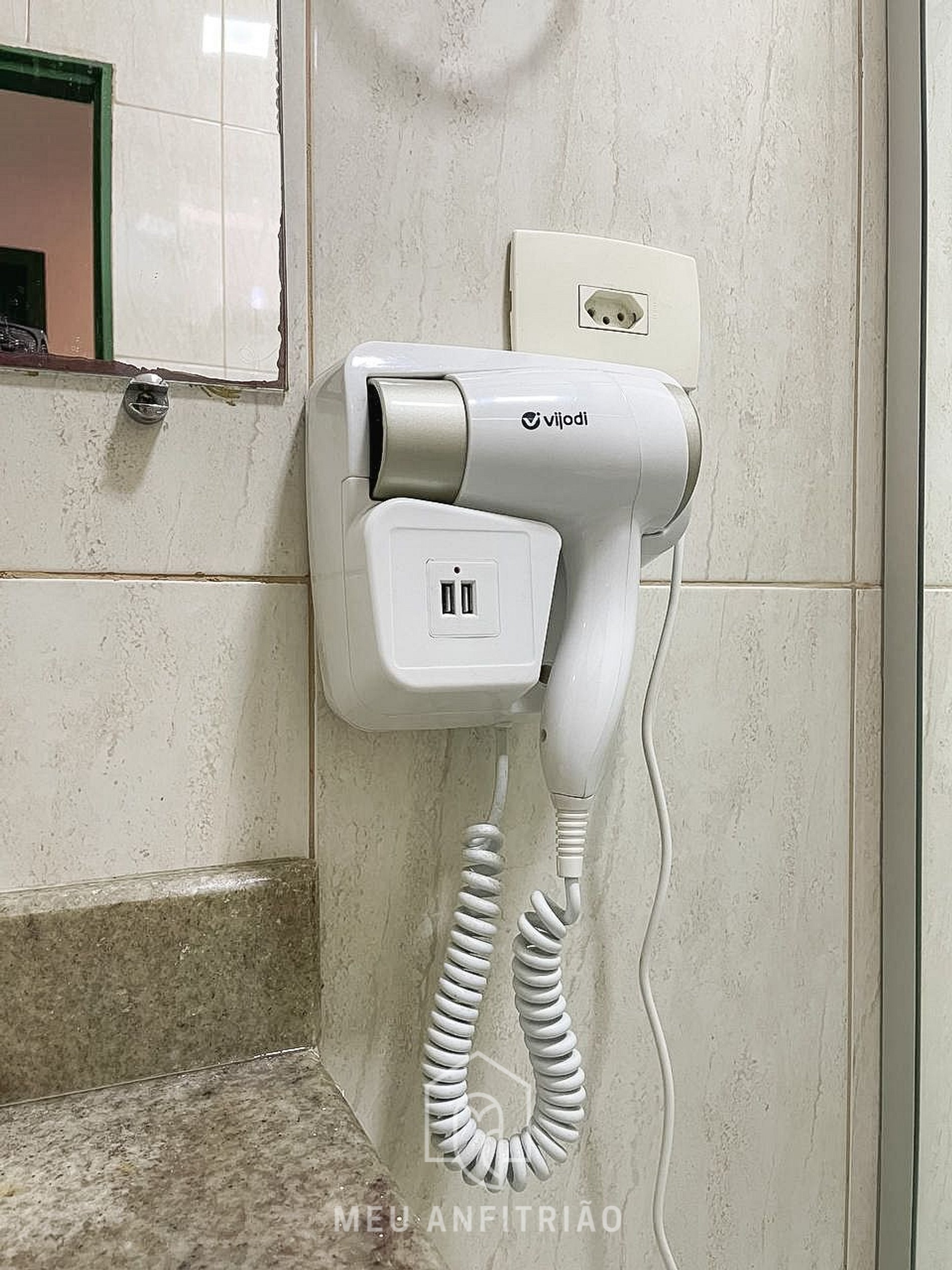 - A voltagem padrão do quarto é 110V. Não há tomadas 220V.