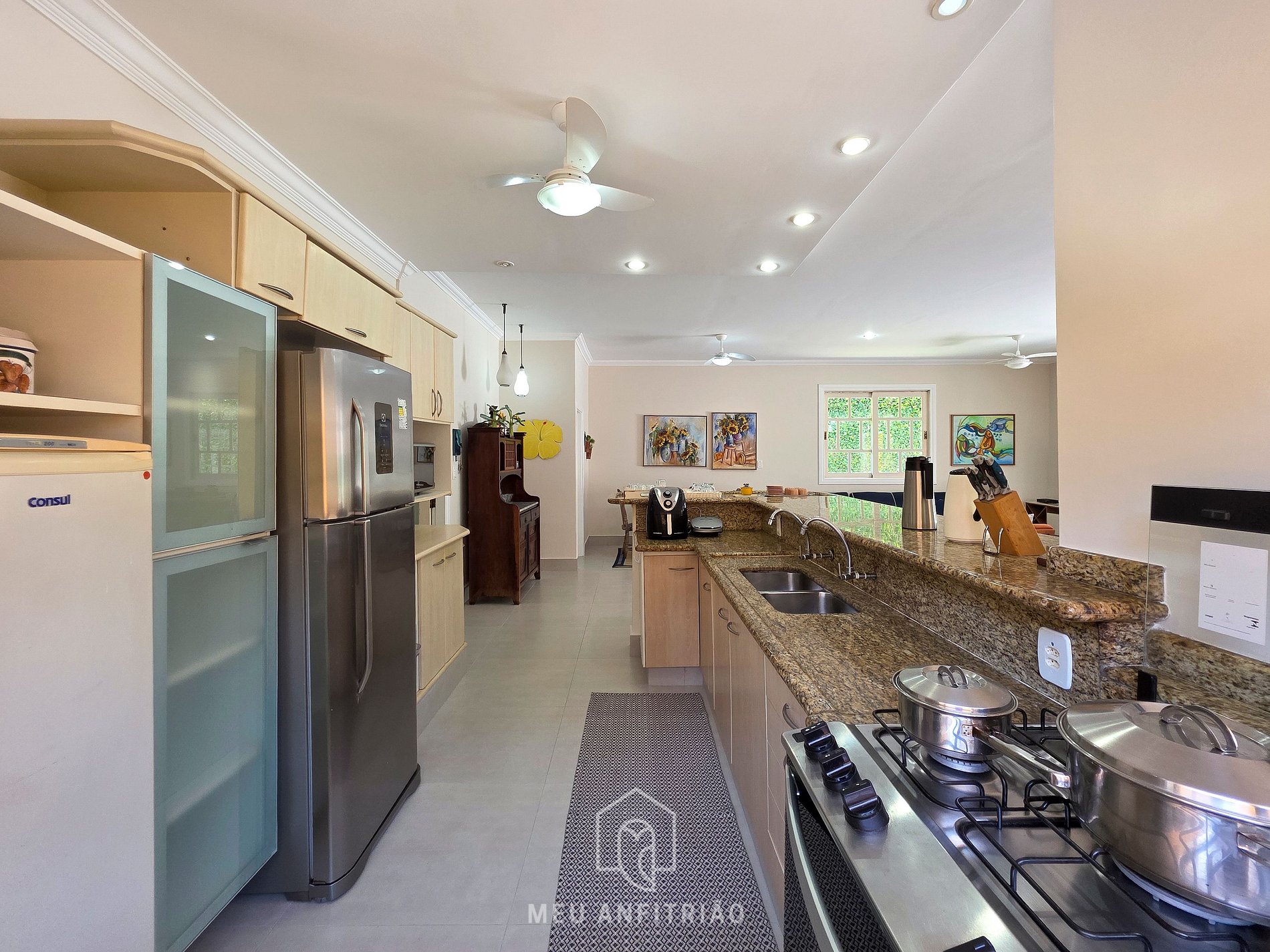 - Cozinha completa com os utensílios ideais para uma estadia prática, como fogão, forno, geladeira, micro-ondas, air fryer, sanduicheira, chaleira elétrica, liquidificador, batedeira entre outros.