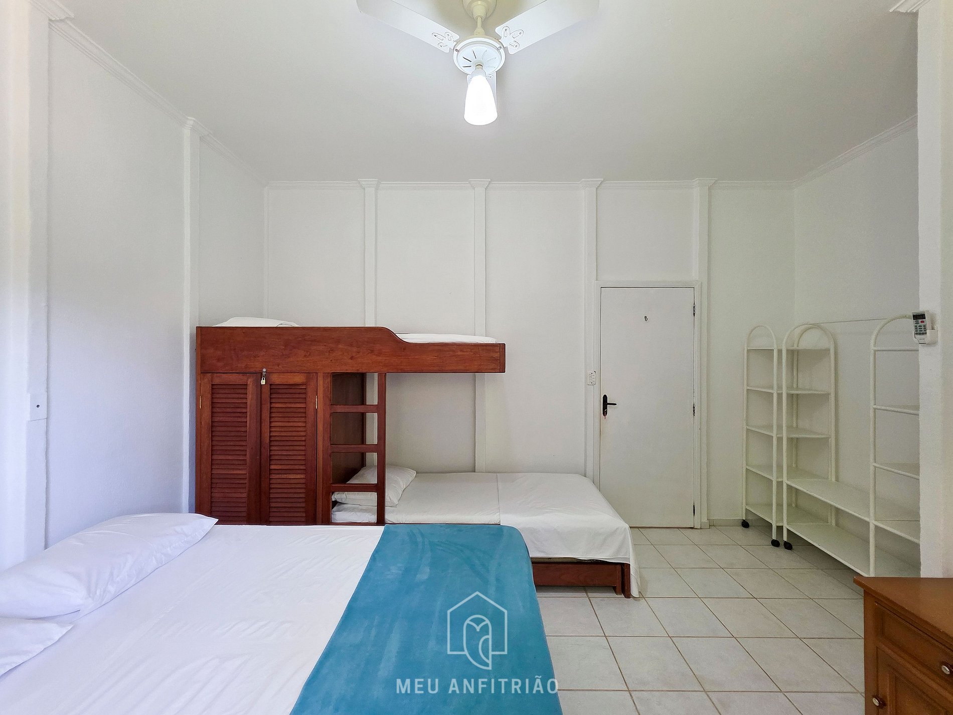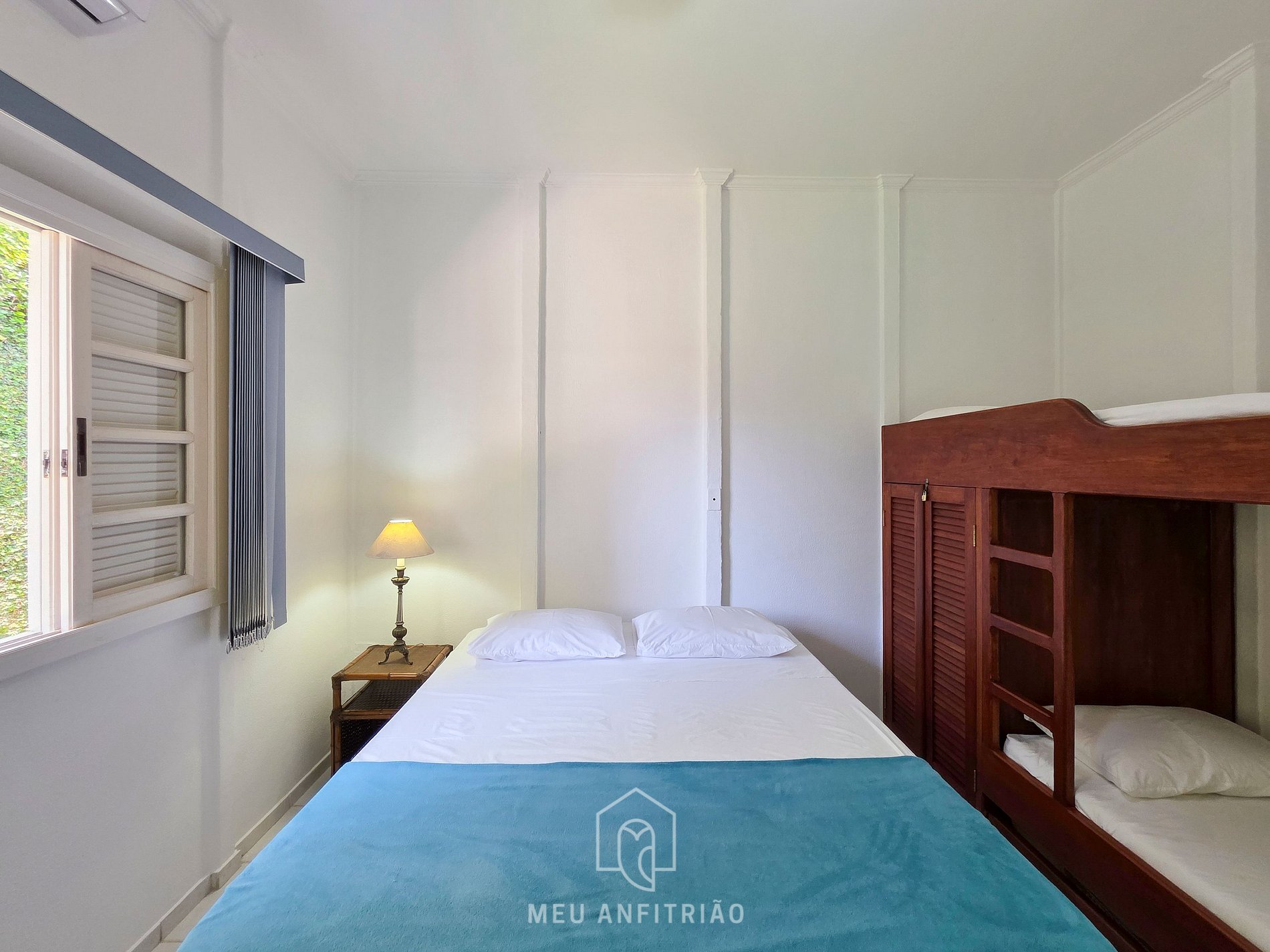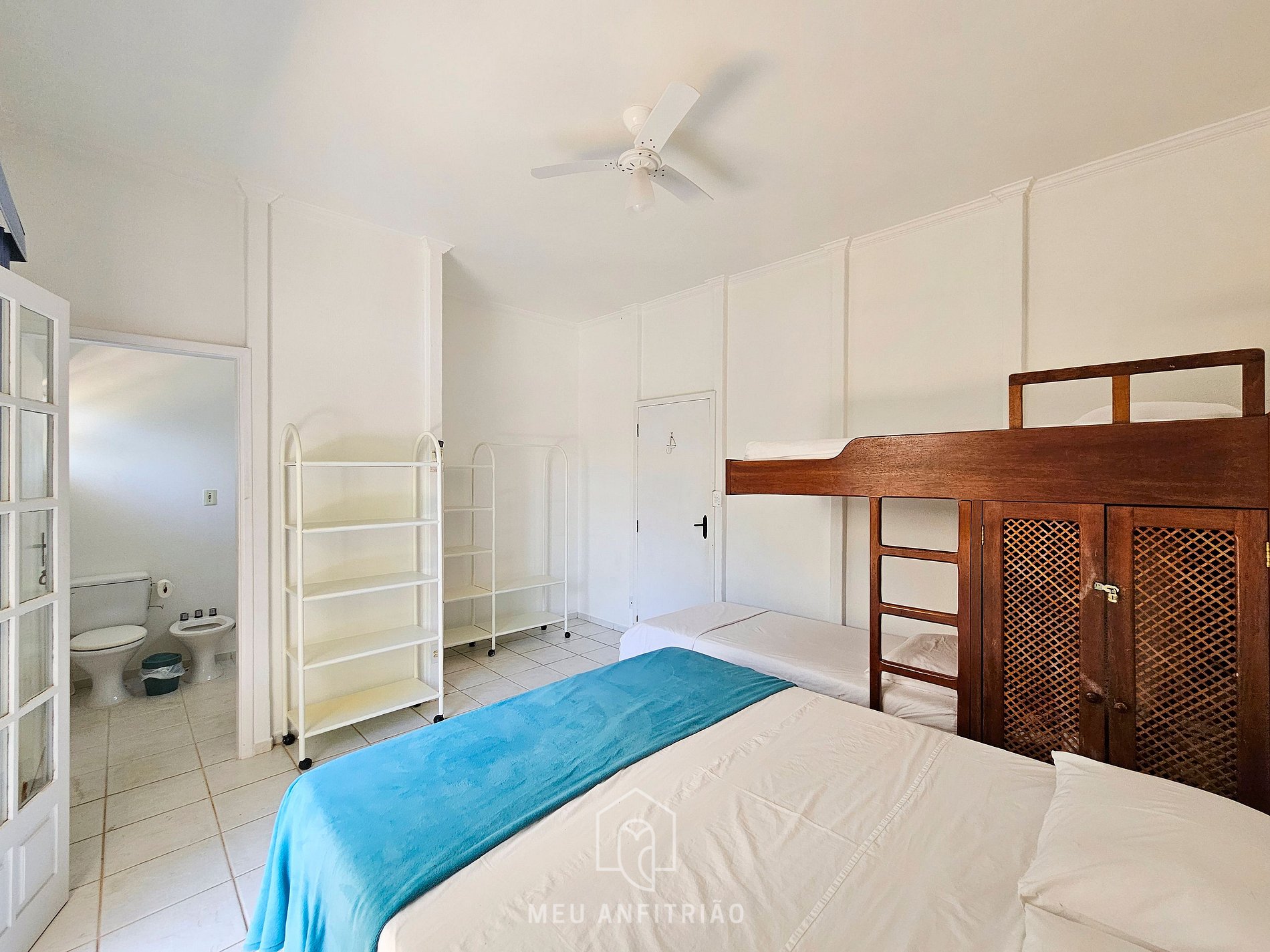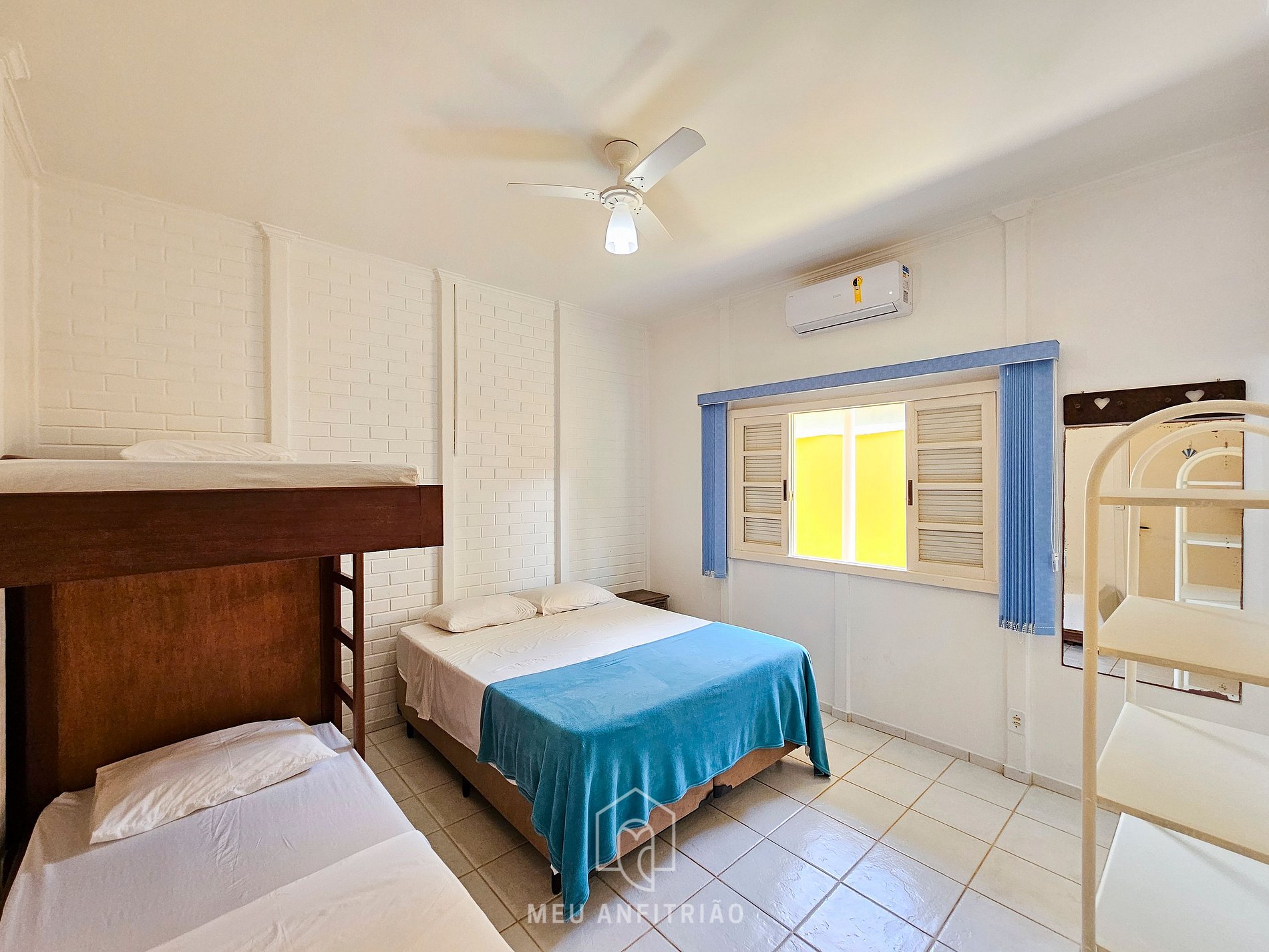 - 3 suítes com uma cama queen e uma beliche em cada. Todas possuem ar-condicionado e ventilador de teto.